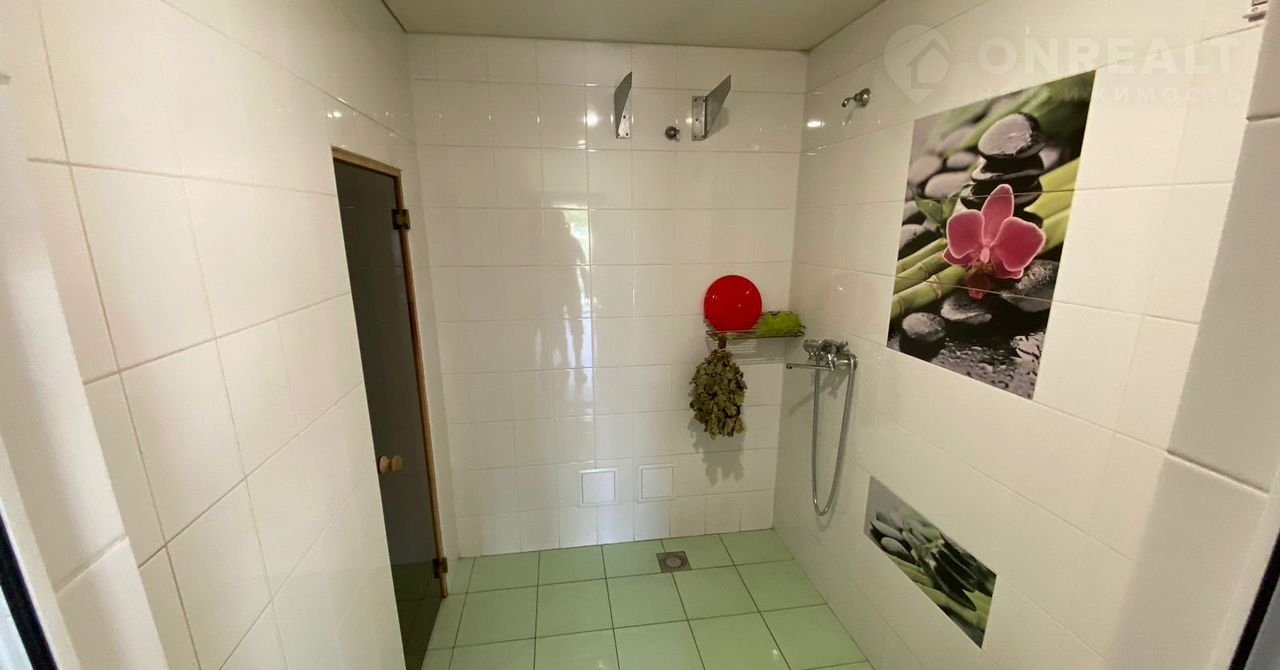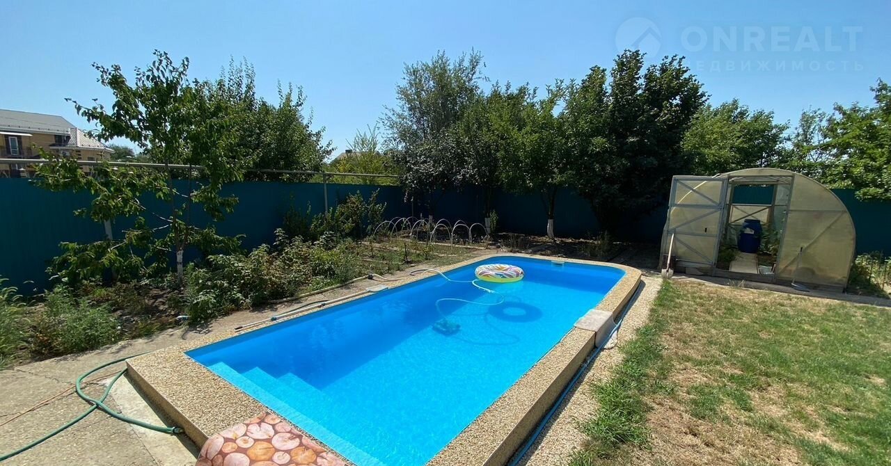 Участок 9 соток. Перед домом большой навес и въезд для машин, вмещает до 8 автомобилей. На заднем дворе расположены стационарный бассейн 7х3 м и баня с комнатой отдыха, а также уличный туалет и небольшая теплица. Двор ухоженный, ландшафтное насаждение внутри и на придомовой территории. Въезд на улицу через шлагбаум, вежливые соседи.