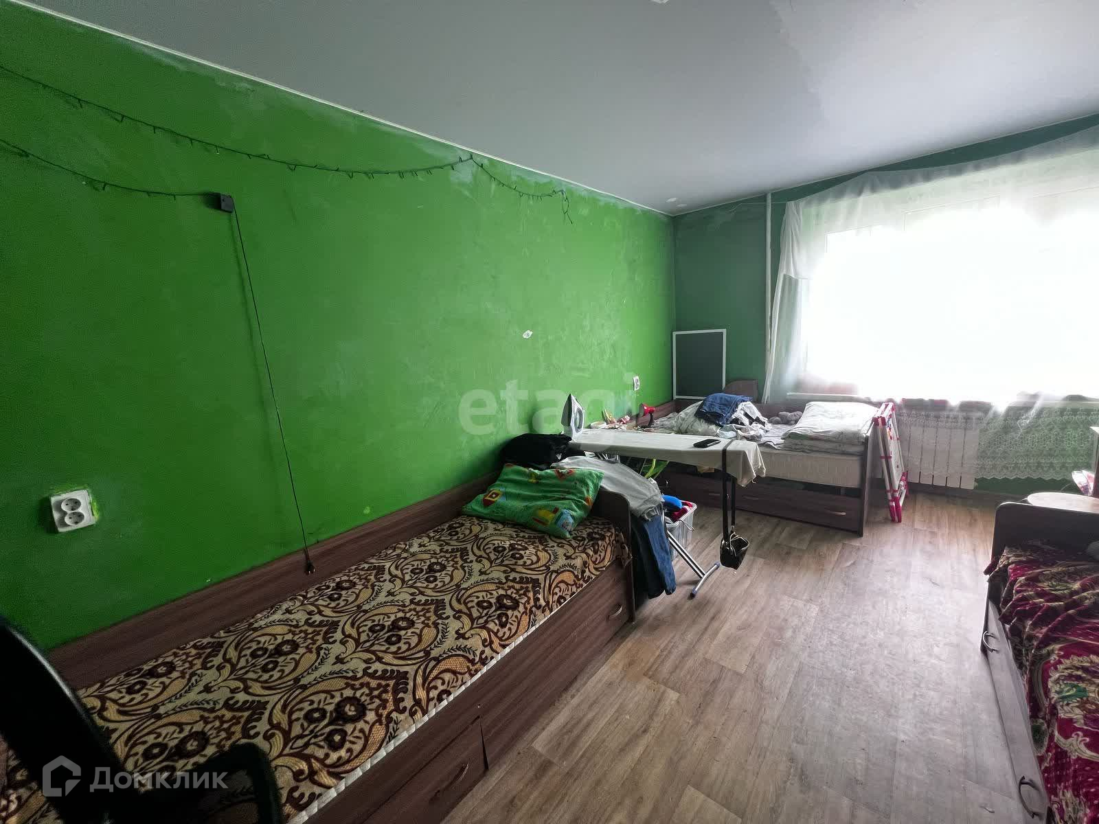 С косметическим ремонтом , на 3 этаже. Сан.узлом могут пользоваться только два человека , раздельный, кухня общая. Остается вся мебель , по необходимости можем выкинуть . Также есть балкон . В собственности более 15 лет.