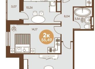 Продается 2-ком. квартира, 55.8 м2