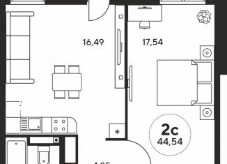 Однокомнатная квартира на продажу, 41.9 м2