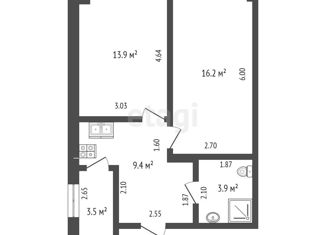 Общая площадь: 55.4 м2