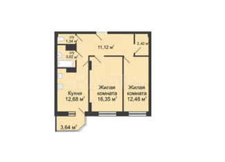 Жилая: 42.5 м2
