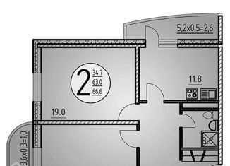 Двухкомнатная квартира на продажу, 56.9 м2, улица Нансена, 103/1
