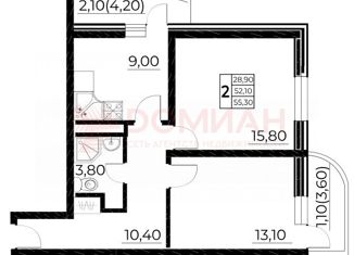 Продажа 2-ком. квартиры, 55.3 м2, улица Нансена, 103/1/7