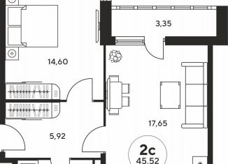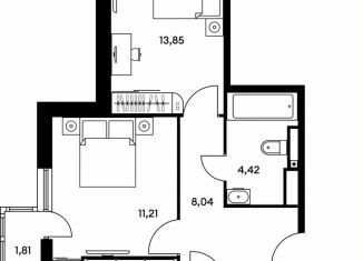 Двухкомнатная квартира на продажу, 43.9 м2
