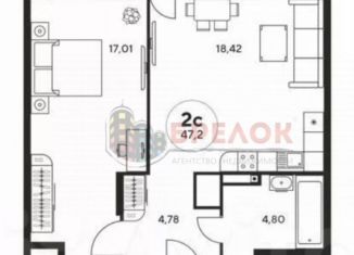 Двухкомнатная квартира на продажу, 47.5 м2