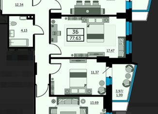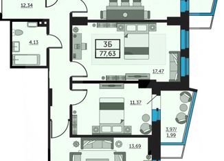 Общая площадь: 77.6 м2
