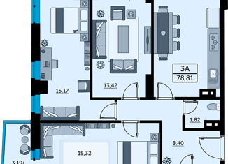 3-ком. квартира на продажу, 78.8 м2, улица Ларина, 45б