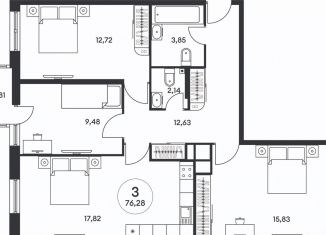 3-комнатная квартира на продажу, 76.3 м2
