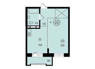 Общая площадь: 38.6 м2