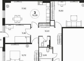Трехкомнатная квартира на продажу, 77.4 м2