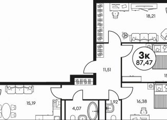 Трехкомнатная квартира на продажу, 84.8 м2