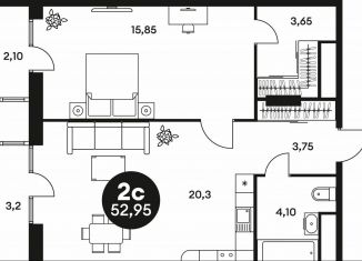 Общая площадь: 53.3 м2