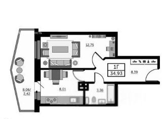 Общая площадь: 35 м2