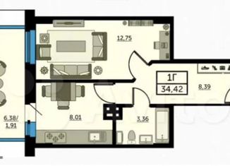 1-комнатная квартира на продажу, 39 м2, улица Ларина, 45с7
