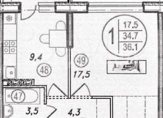 1-комнатная квартира на продажу, 36 м2, 1-я Ковровая улица, 65/1