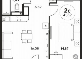 Однокомнатная квартира на продажу, 41.8 м2
