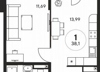 Продажа однокомнатной квартиры, 38.7 м2