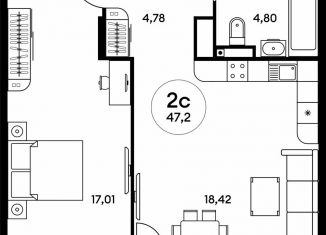 Продается 1-комнатная квартира, 47.2 м2
