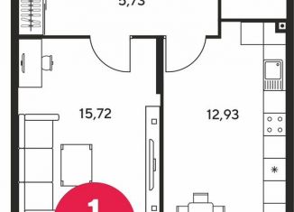 Однокомнатная квартира на продажу, 42 м2, улица Малиновского, 33Б