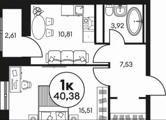 Продажа однокомнатной квартиры, 41.3 м2
