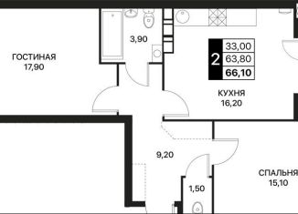 Продажа 2-комнатной квартиры, 66.1 м2