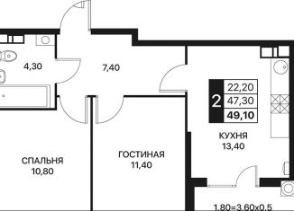 Продам двухкомнатную квартиру, 53.3 м2, проспект Шолохова, 211/3