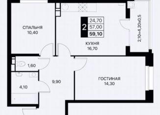 Продается двухкомнатная квартира, 59.1 м2