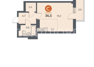 Общая площадь: 36.5 м2