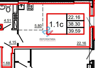 Квартира на продажу студия, 39.6 м2, улица Оганова, 20с2