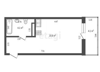 Общая площадь: 28.1 м2