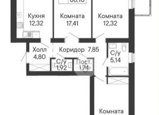 Продам трехкомнатную квартиру, 88.1 м2