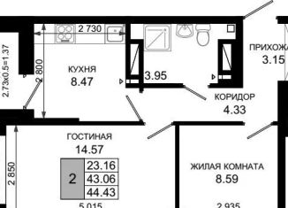 2-комнатная квартира на продажу, 44.4 м2, Элеваторный переулок, 6/2с