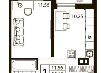 Однокомнатная квартира на продажу, 41.4 м2