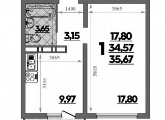 Продажа однокомнатной квартиры, 35.7 м2, улица Дмитрия Петрова