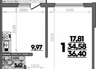 Продается однокомнатная квартира, 36.4 м2, улица Дмитрия Петрова