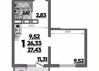 1-ком. квартира на продажу, 27.4 м2, улица Дмитрия Петрова