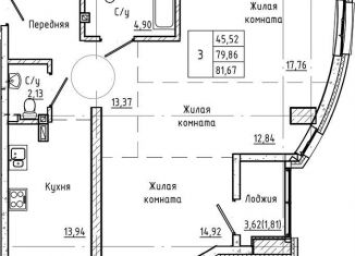 Продам трехкомнатную квартиру, 78.3 м2, улица Ерёменко, 4/26