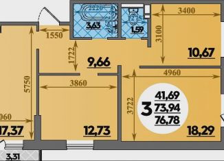3-комнатная квартира на продажу, 76.7 м2, Уланская улица, 17с1