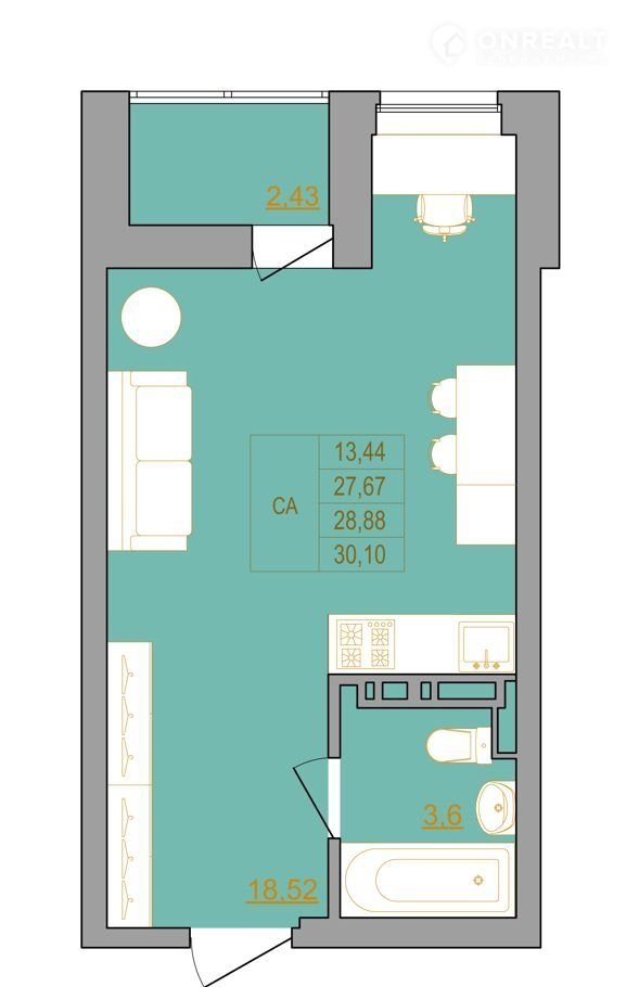 Общая площадь 30.1 м2