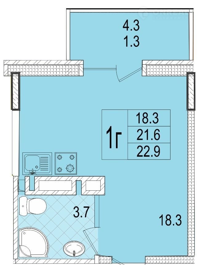 Общая площадь 22.9 м2