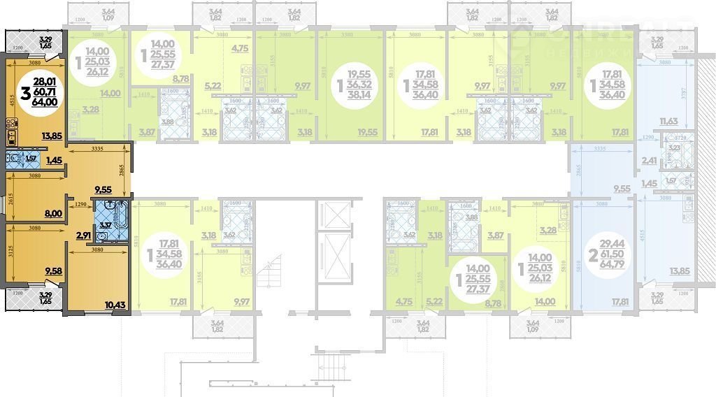 Общая площадь 64 м2