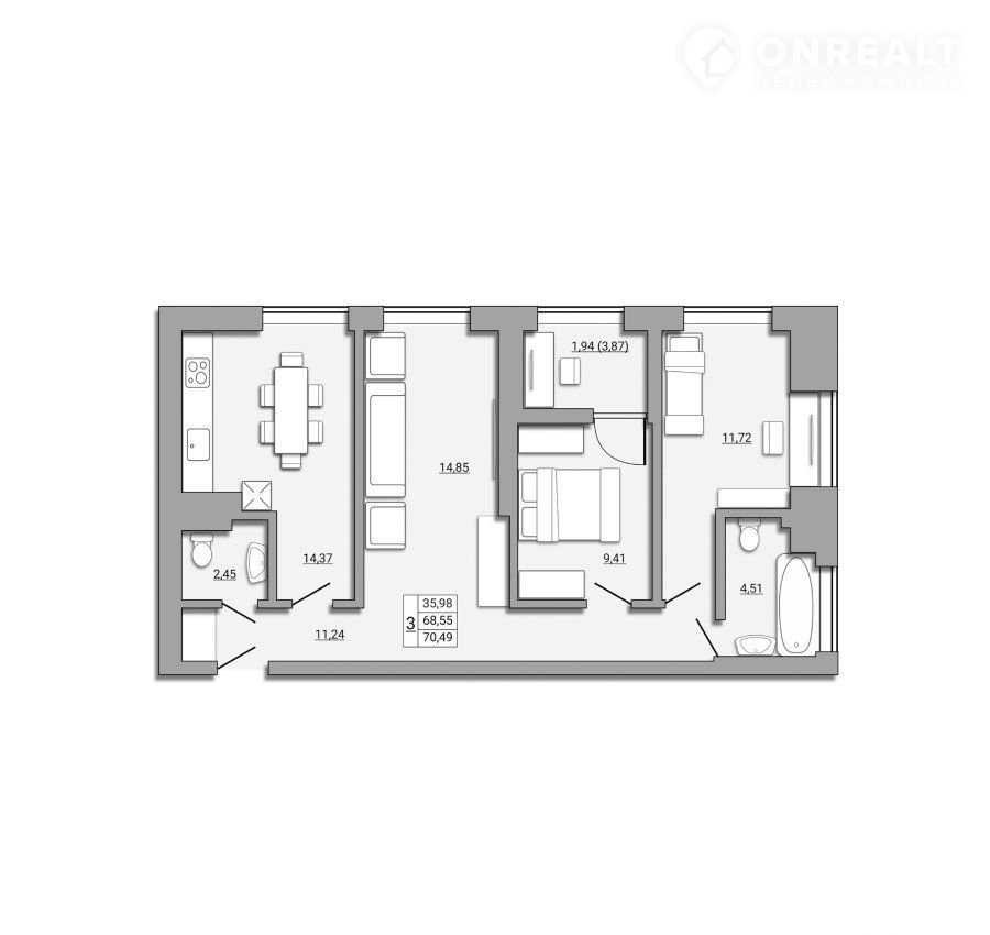 Общая площадь 70 м2