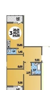 3-комнатная квартира, 64 м2, этаж 2 / 18, на продажу в Ростове-на-Дону