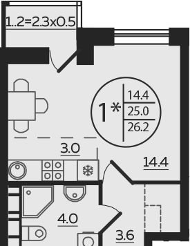 Общая площадь 26 м2