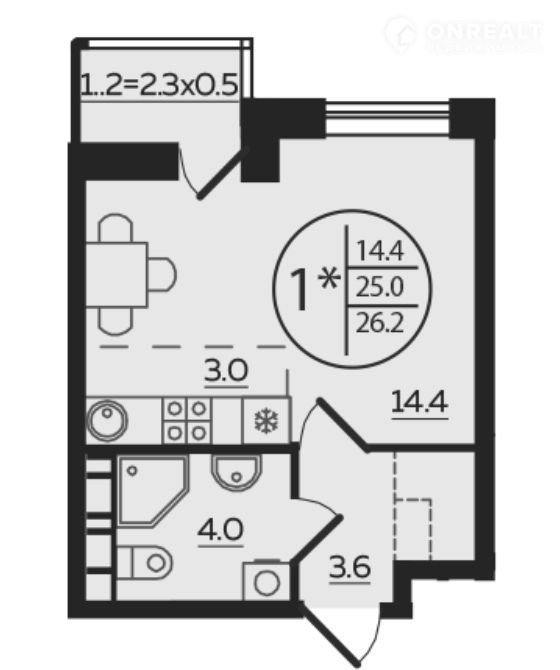 Общая площадь 26.2 м2