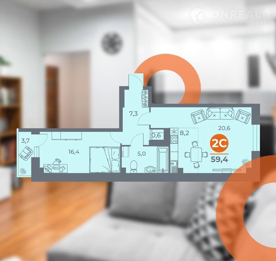 Общая площадь 59.8 м2