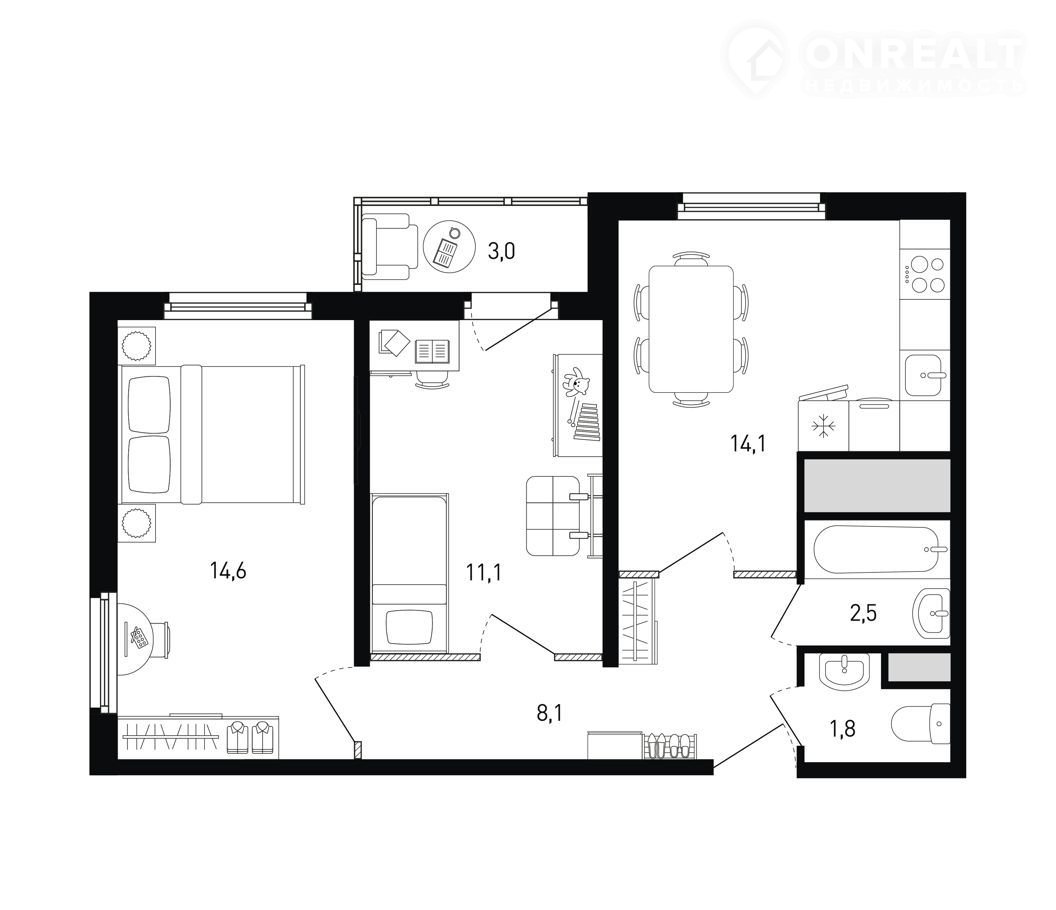 Площадь кухни 14.1 м2