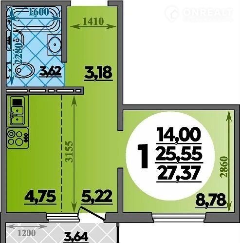 Общая площадь 28.1 м2