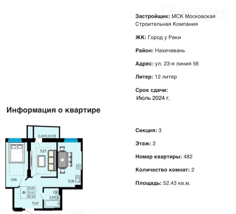 Не агентство. Продается 2 к квартира в же Город у река. Срок сдачи июнь 2024г
